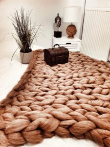 Lana Merinos cu fir gigant este moale, perfecta pentru frigurosi, hipoalergenica, regleaza temperatura corpului. Nu retine mirosuri, bacterii, umezeala. Este foarte prietenosa cu mediul, pentru ca este biodegradabila.